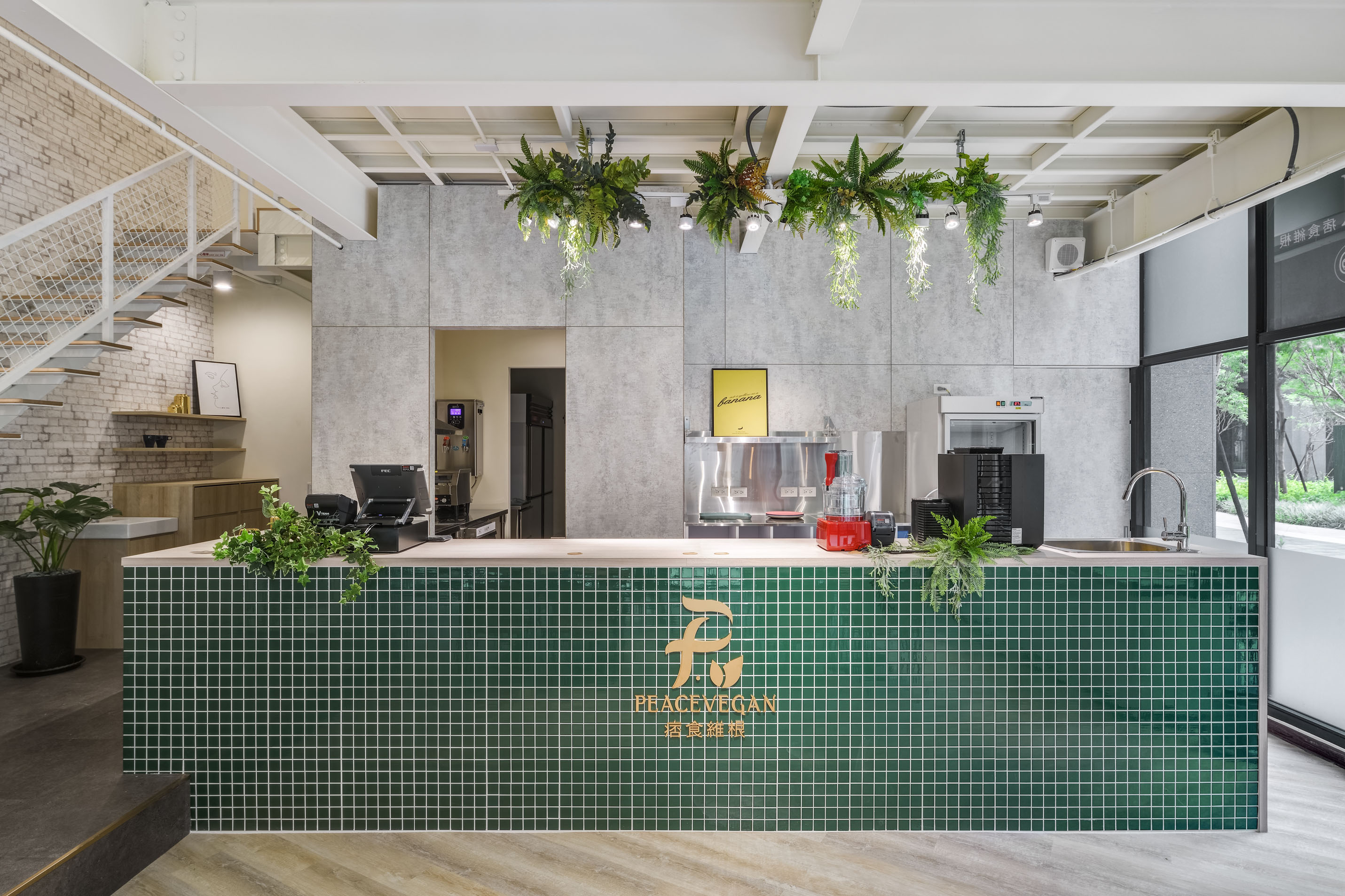 而這份理念恰恰與微自然「友善環境」的核心價值不謀而合,因此,當痞食維根好市多加盟店找上微自然設計時,我們很快就以白色純淨與綠色環保作為定調,揉合大自然元素如日光、空氣、植物作為貫穿全室的設計主軸。