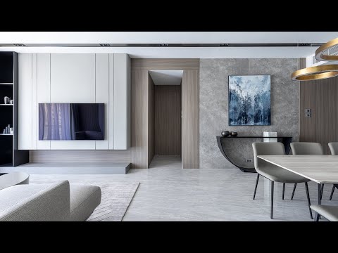 設計師為戶主二人設計一個超過1000呎的家居。戶主要求一個既符合二人需要,又有質感的空間,設計師從選材著手,利用不同物料,打造一個極富層次感且風格一致的空間。客飯廳過長為單位其中一個缺點,設計師有見及此,以不同素材營造層次感,再以屏風分割不同空間,改善缺憾既可以增加儲物量。