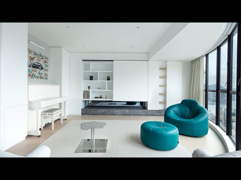 戶主希望可以於單位沿用收藏多年的藝術品,故此設計師從多件色彩鮮明的藝術品出發,以白色為主要基調,令整體感覺更和諧,打造一個簡約路線的家居環境。利用留白空間,襯托各個收藏品的色彩。另外,配合戶主的生活動線,設計師亦重新調配「L」型客飯廳的佈局,將飯廳調放到廚房旁,客廳則設置到窗邊位置,配合大量自然光,提升整體格調;設計師更以戶主習慣著想,一改浴室浴缸成充滿異國風情的桑拿,增加空間實用性。